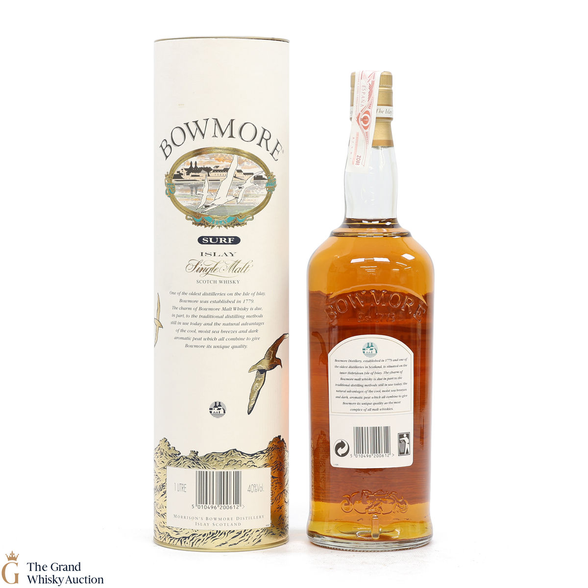 Bottles for the travel retail market, this Bowmore has a nose of sea spray and peat smoke. The Bowmore distillery is the oldest established one on Islay. It was founded in 1779.