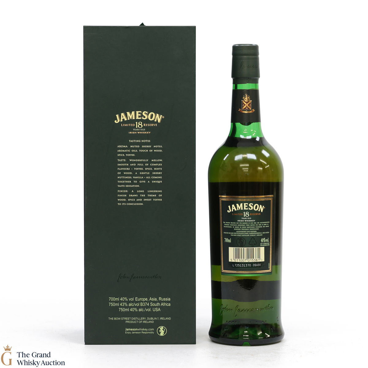 This well-presented 18-year-old Jameson blend of two pot still whiskeys along with one grain and sherry cask maturation for extra richness and complexity.