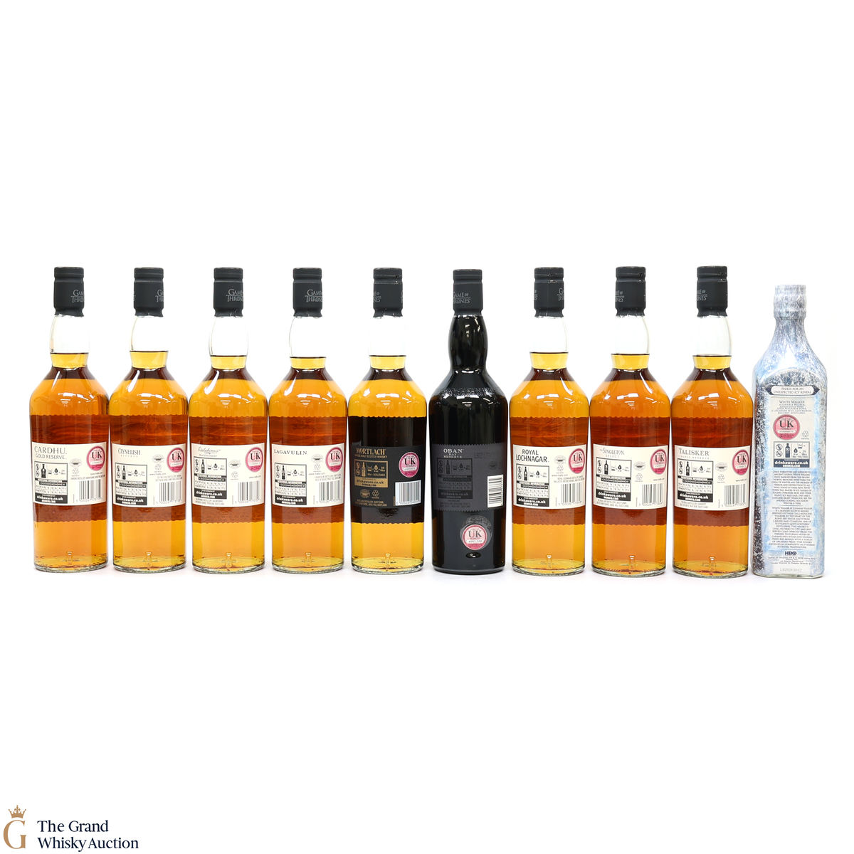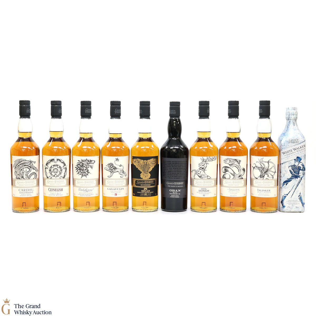 Game of Thrones series plus Johnnie Walker White Walker Game of Thrones edition, Song of Fire and Mortlach, Six Kingdoms edition. This lot includes 10 x 70cl.