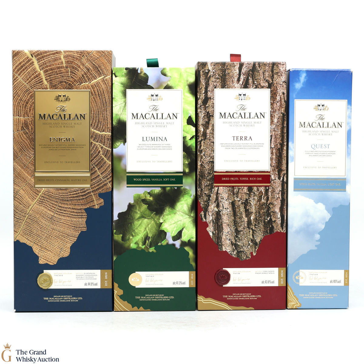 The Macallan Quest Collection is a reflection of their quest to discover the best casks, flavours and aromas, their journey took them across various continents, cultures and terrains. Each expression explores new casks, flavours and aromas of The Macallan. This quartet of whiskies was created exclusively for travel retail.