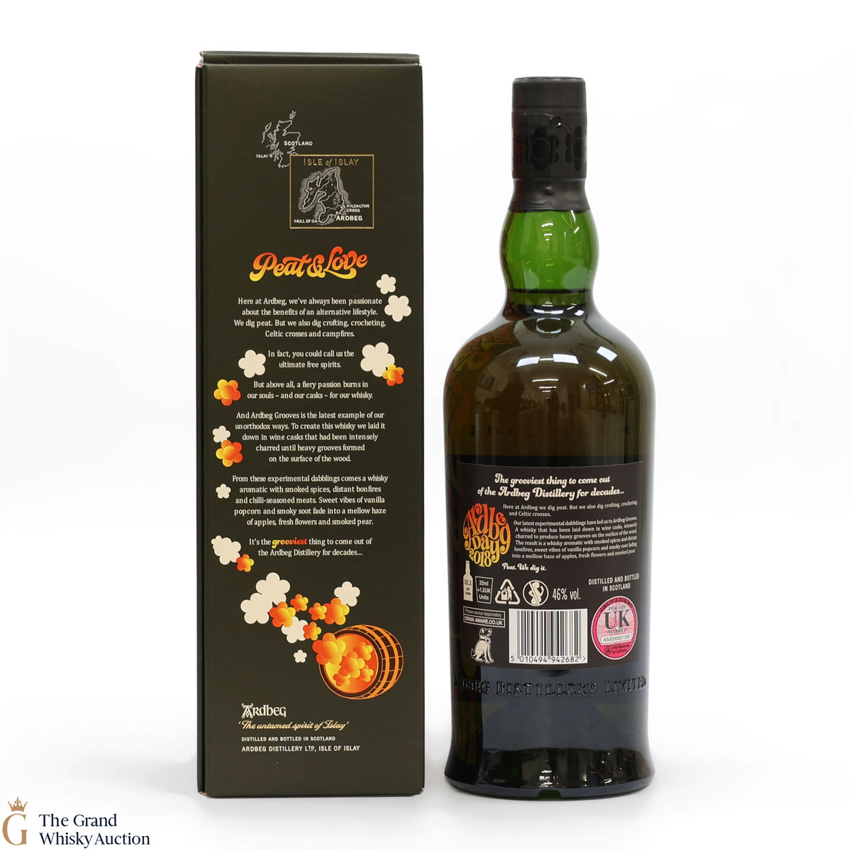This limited edition Islay single malt was released to mark the 2018 Ardbeg Day at the Islay Festival of Music & Malt. The theme is a throwback to the Island's 1960s spirit, embodying the ideals of 'peat & love'! Ardbeg Grooves is crafted with ex-wine casks that are re-charred to create heavy grooves in the wood, allowing more interaction with the spirit and creating a richer flavour.