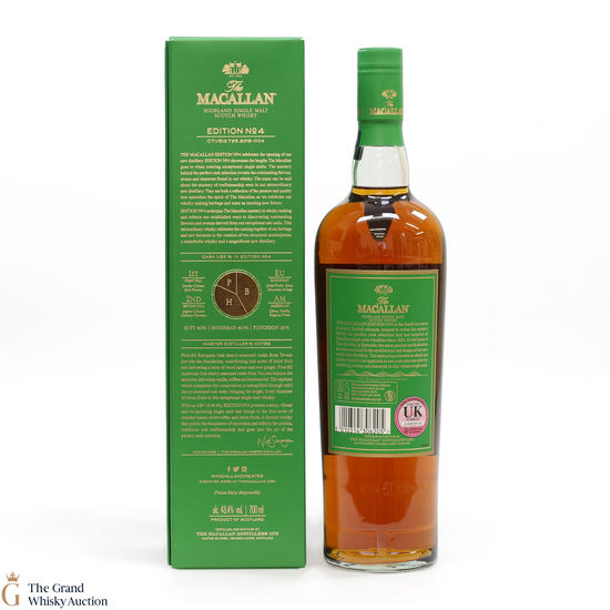 The fourth release in the Edition Series from The Macallan, this Speyside single malt is a celebration of the distillery's whisky making heritage, combining a unique selection of oak cask styles. Edition No.4 reflects the craftsmanship and pioneering design of the new Macallan distillery.