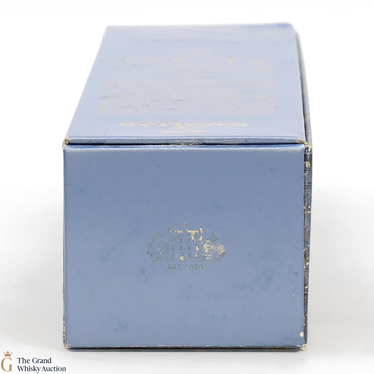 The Macallan logo on the box lid is fading.