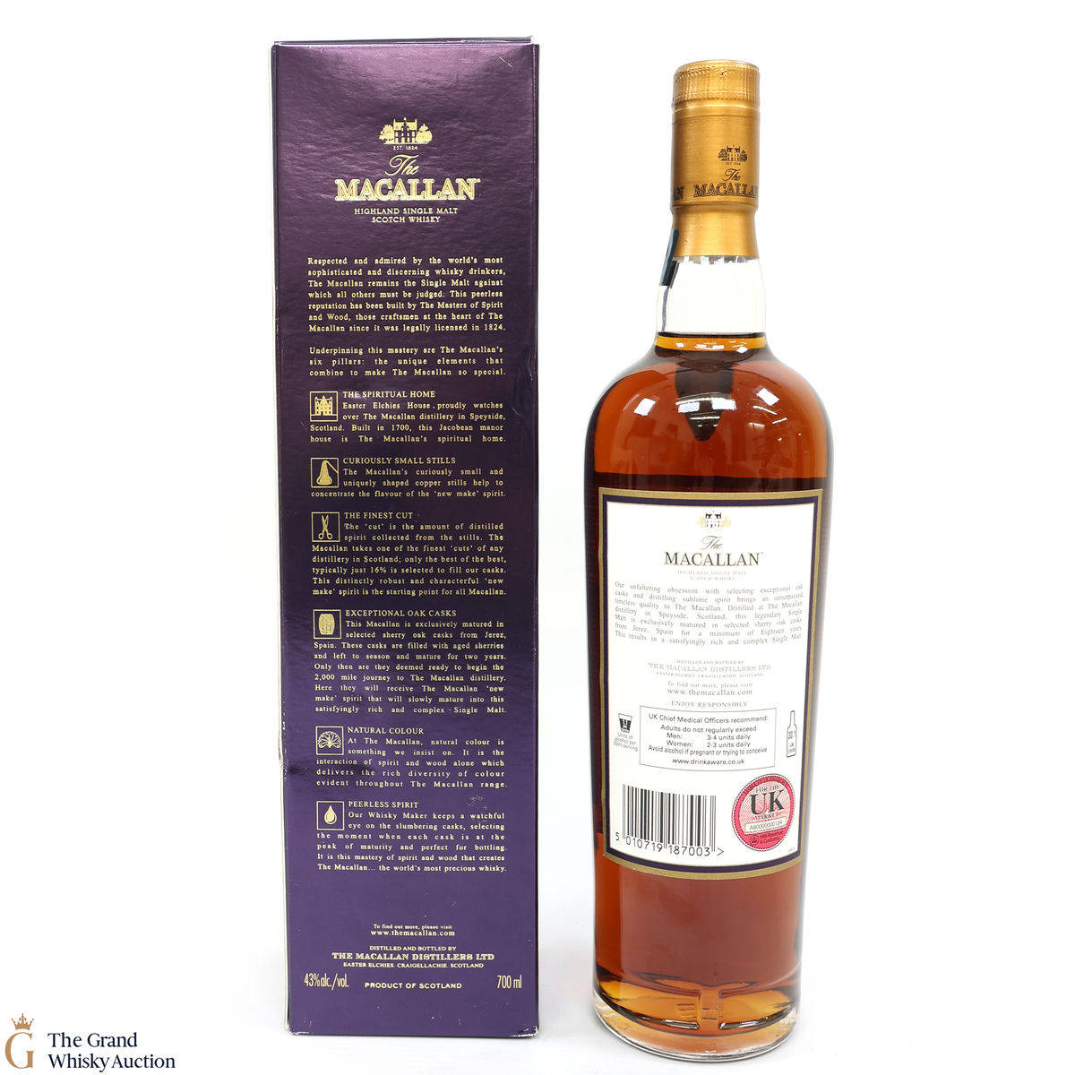 Due to the various ages of bottles and their seals, the condition of liquid is at the buyer's discretion and no claim can be lodged against failure/leakage in transit. Loss and breakage cover is available at 3% of the hammer price as standard. If the lot is not insured, no claim can be lodged against the courier or The Grand Whisky Auction for breakage or loss in transit.
