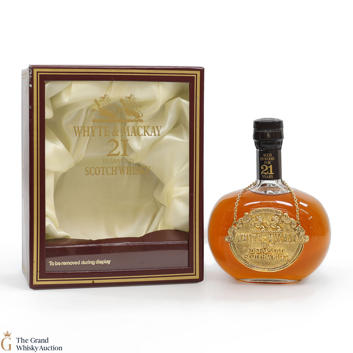 This is a very nicely presented bottle of 21-year-old blended whisky from Whyte & Mackay, which is believed to be produced in the 1980's. The bottle comes with a metallic tag that hangs from the neck of the decanter. It also comes in a beautiful silky lined presentation box.