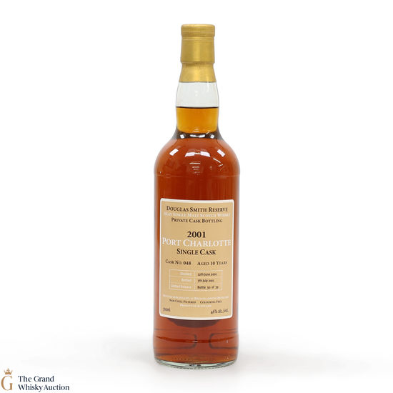 This Port Charlotte 10 Year Old was distilled in 2001 and matured in a single cask #046 until July 2011. A private bottling of 'Douglas Smith Reserve'. One of just 39 bottles.