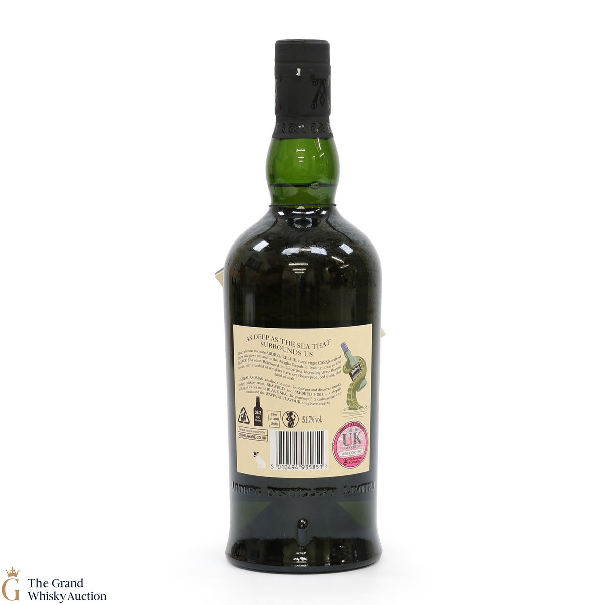This is a committee exclusive release of the Ardbeg Kelpie, a single malt released in 2017. It was matured in casks made from virgin Black Sea oak and more traditional bourbon casks. The Committee Release is bottled at the higher strength of 51.7% ABV (while the standard Ardbeg Kelpie has bottled at 46% ABV).