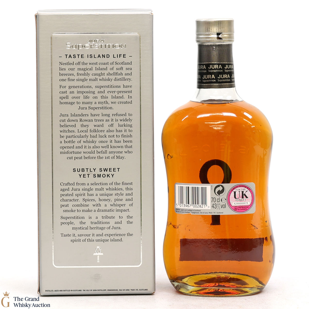 This is the relatively more heavily peated version of the single malt, made up of different ages. It is named after the fact that Islanders were very superstitious in the past, this is a nod to them, and to the Island of Jura which is still dotted with ancient stones and markings. When you raise a glass of this whisky, you're raising a glass to the ancient ways of the island.