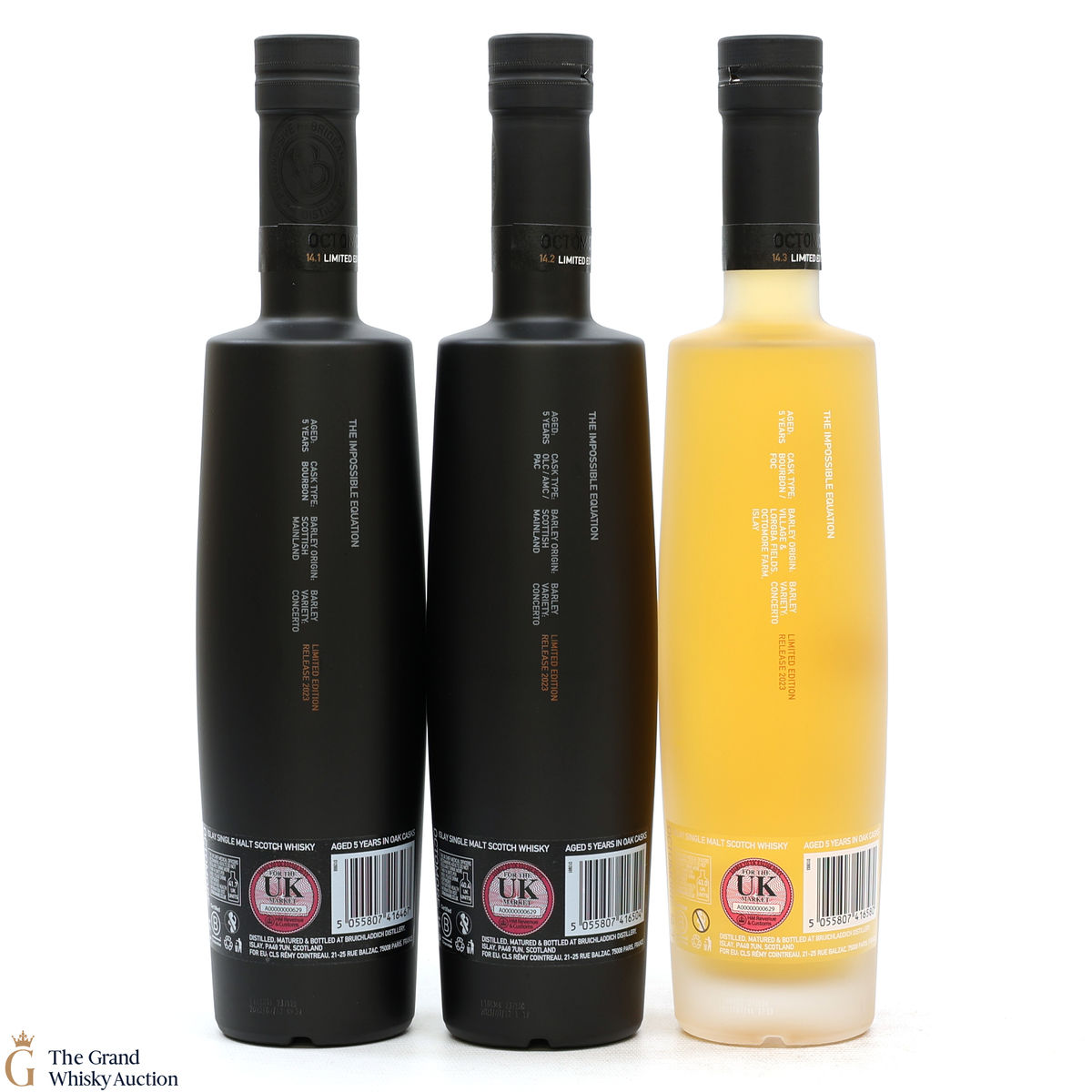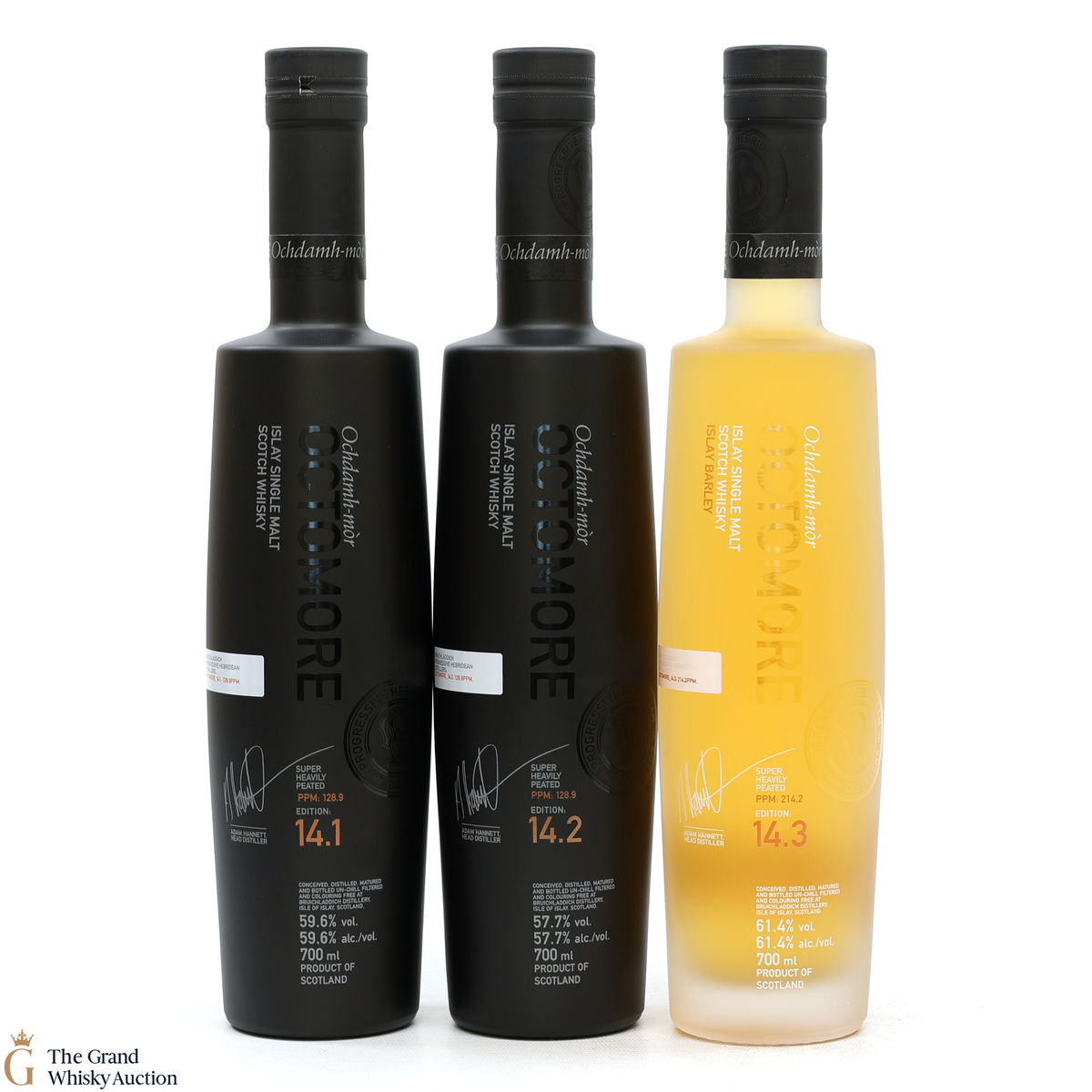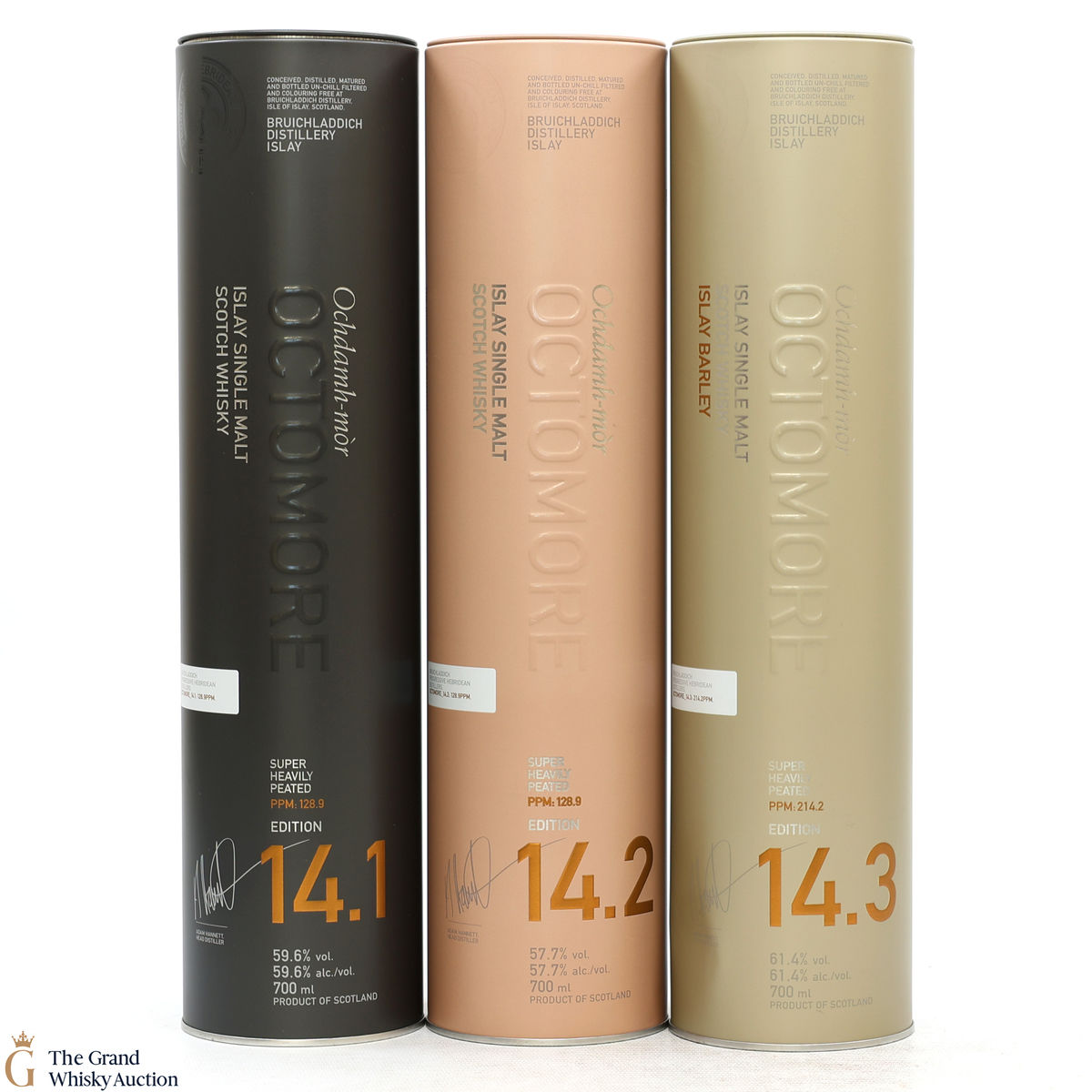 Octomore - 5 Year Old 14.3 - Islay Barley Ex-Bourbon & Wine Cask: 14.3 was distilled in 2017 using 100% Islay-grown Concerto barley from the 2016 harvest. It has been matured for 5 years in a combination of first-fill ex-bourbon and second-fill wine casks. It was bottled at 61.4% ABV with a phenol level of 214.2PPM.