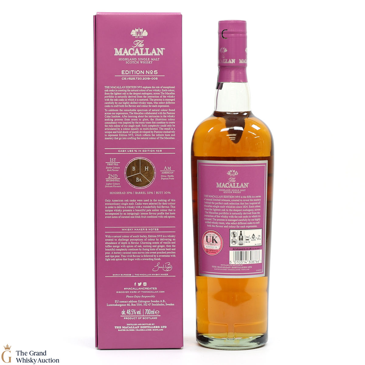 The fifth release in the Edition Series from The Macallan, The Macallan Edition No. 5 celebrates The Macallan’s extensive natural colour spectrum and the intricate whisky-making process, in partnership with masters at the Pantone Color Institute™ to create a unique shade of purple that features on the packaging.