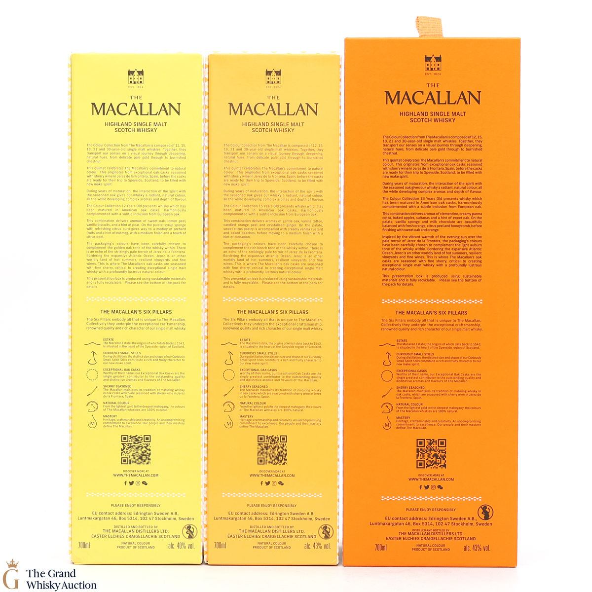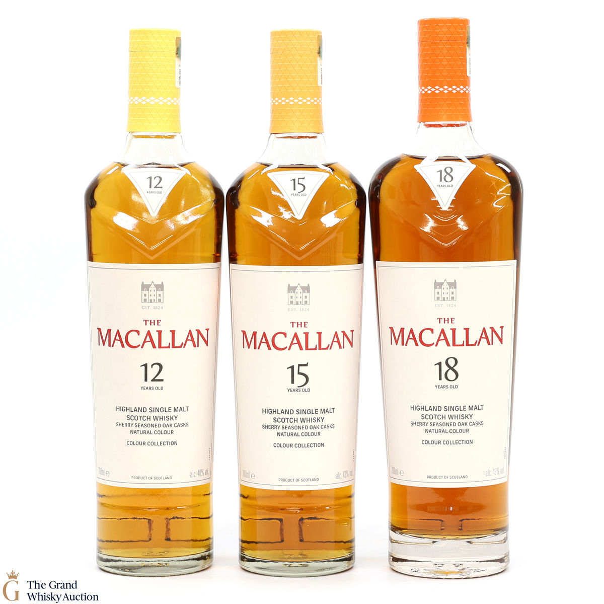 The return of the age statement honours these distinctive global travel exclusive releases. The Colour Collection is a range of exceptional whiskies, celebrating two pillars on which The Macallan legacy is built: Natural Colour and Sherry Seasoning. It is composed of 12,15,18,21 and 30-year-old expressions.