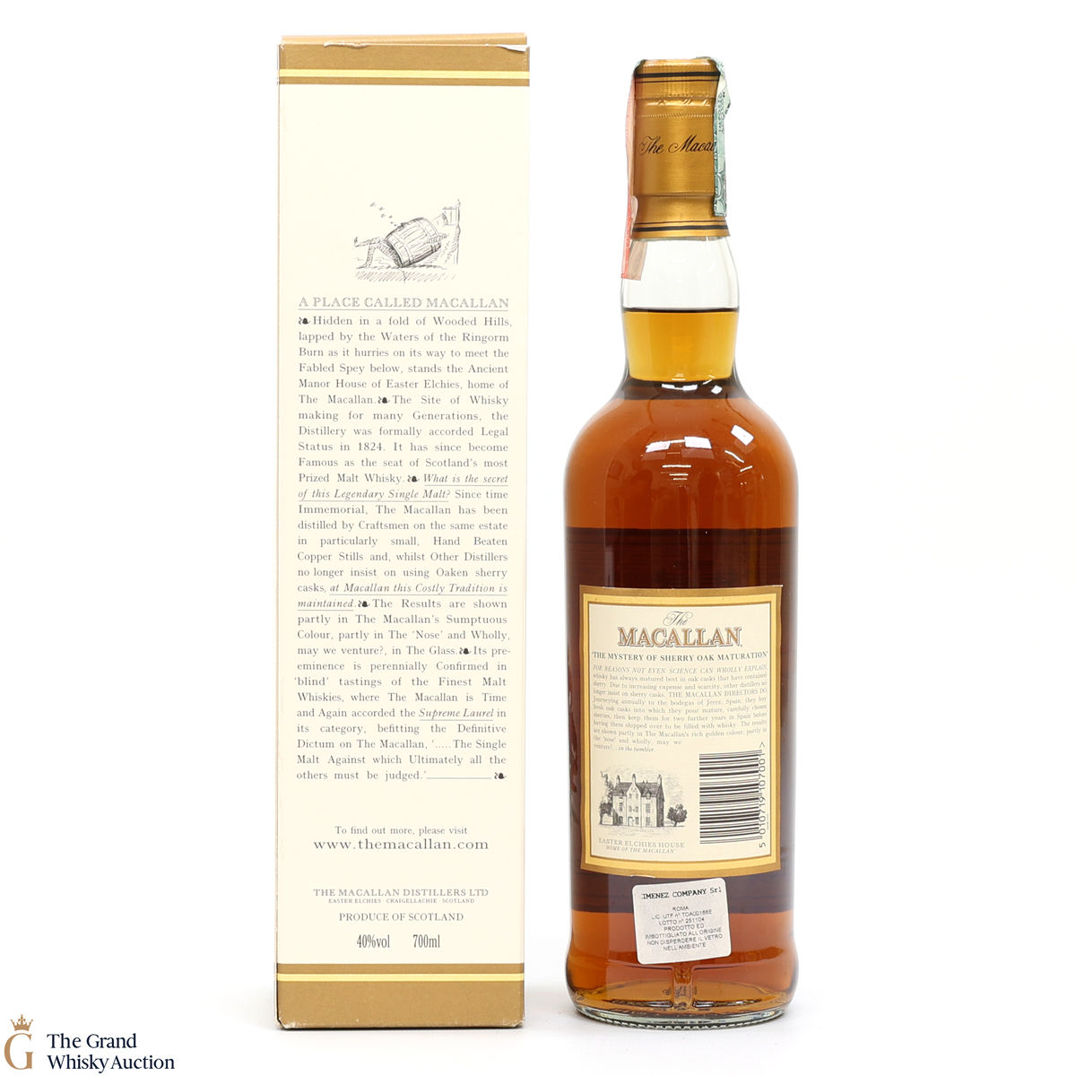 An old bottling of Macallan 10-year-old, which has been exclusively matured in sherry oak casks. Bottled in the early 2000's.