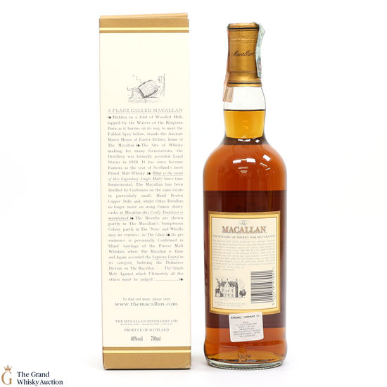An old bottling of Macallan 10-year-old, which has been exclusively matured in sherry oak casks. Bottled in the early 2000's.