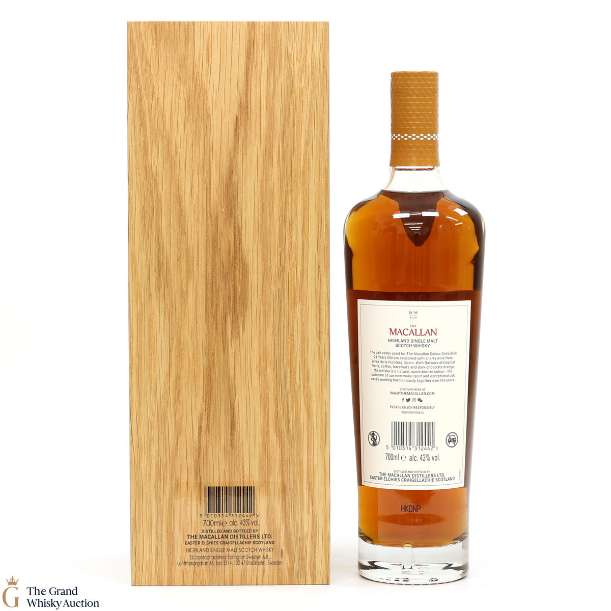 The return of the age statement honours these distinctive global travel exclusive releases. The Colour Collection is a range of exceptional whiskies, celebrating two pillars on which The Macallan legacy is built: Natural Colour and Sherry Seasoning. It is composed of 12, 15, 18, 21 and 30-year-old expressions.