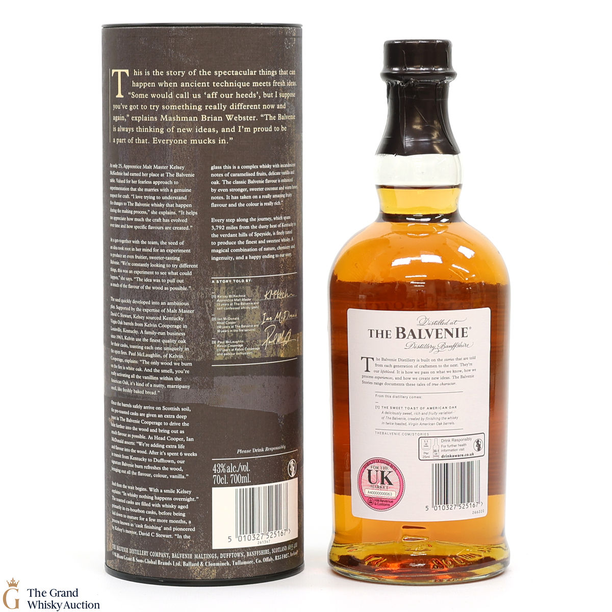 This is the introductory release from The Balvenie Stories range. Celebrating Kelsey McKechnie's idea to import virgin oak barrels from Kentucky and deeply toast them at the distillery's cooperage. They were then filled with Balvenie's ex-bourbon oak aged whisky for a finishing period.