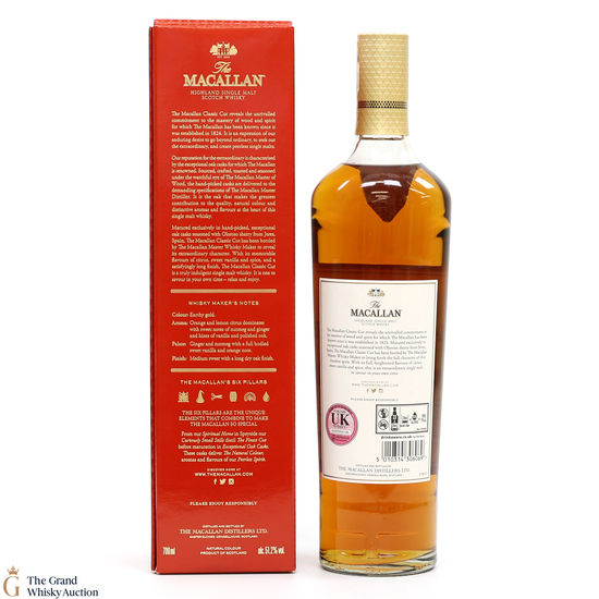The Macallan Classic Cut - 2018 edition is the second release in the limited annual series. It was matured exclusively in hand-picked oloroso sherry oak casks from Jerez, Spain, before being bottled at 51.2% ABV.