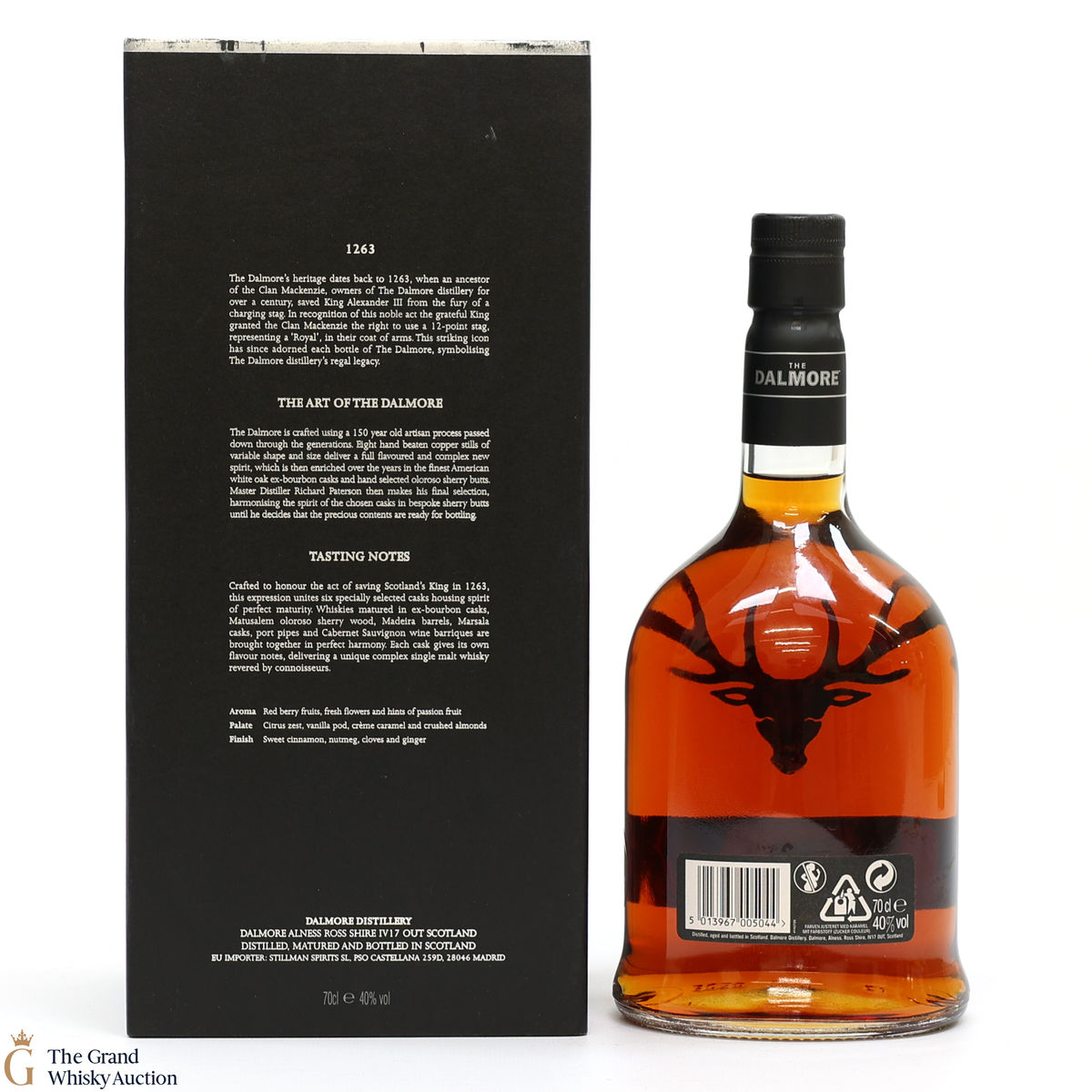 To make The Dalmore King Alexander III, Master Distiller Richard Paterson specially selected 6 casks of differently aged Dalmore malts matured in wine, Madeira, sherry, marsala, Kentucky bourbon and port casks. A remarkable feat of blending crafted to honour the act of saving Scotland's King in 1263. It is a rich, fruity Highland single malt.