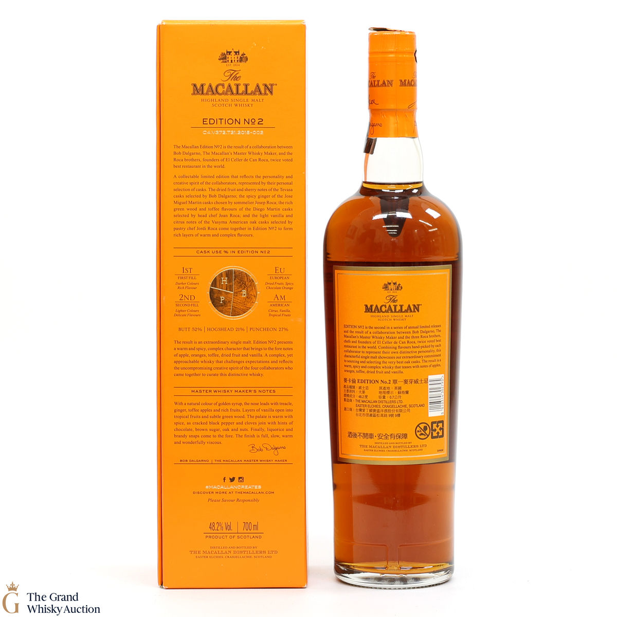This is the second release from the Macallan Edition series. Edition No.2 is a collaboration between Macallan's master blender Bob Delgarno and legendary Spanish chefs Joan, Josep and Jordi Roca. The Rocas are the three brothers behind El Celler de Can Roca (named Best Restaurant in the World twice by Restaurant magazine). This single malt was drawn from a combination of sherry puncheons, butts and refill hogsheads.