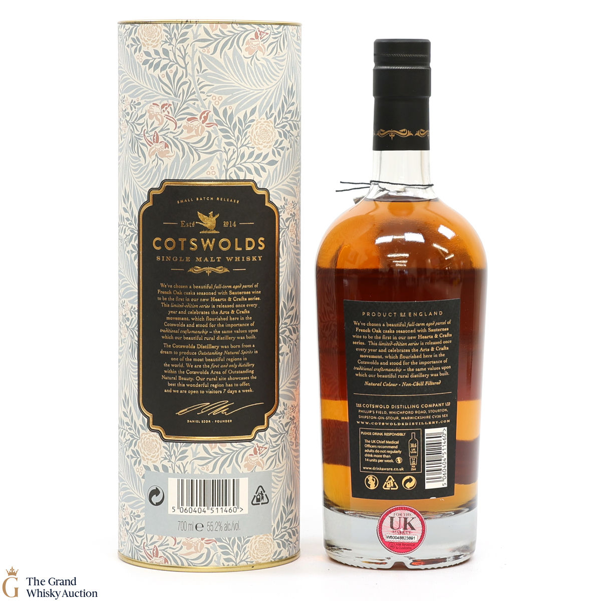 Distilled at the Cotswolds Distillery in England, this single malt was held in premium French oak casks that had previously held Sauternes wine. Bottled as part of the Hearts & Crafts series, this is one of only 2050 produced.