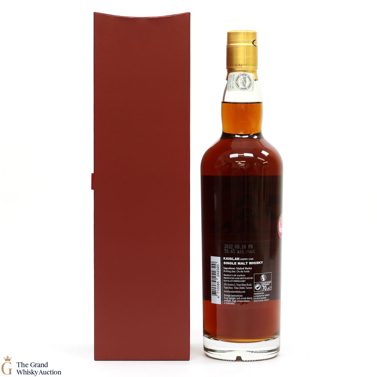 Matured in Spanish Oloroso sherry cask number S140722023A this limited edition is one of just 480 individually numbered bottles released. Specially selected by the Kavalan Master Blender, it was bottled by hand at the distillery, without any colouring, or chill-filtration at the natural cask strength of 58.6%.