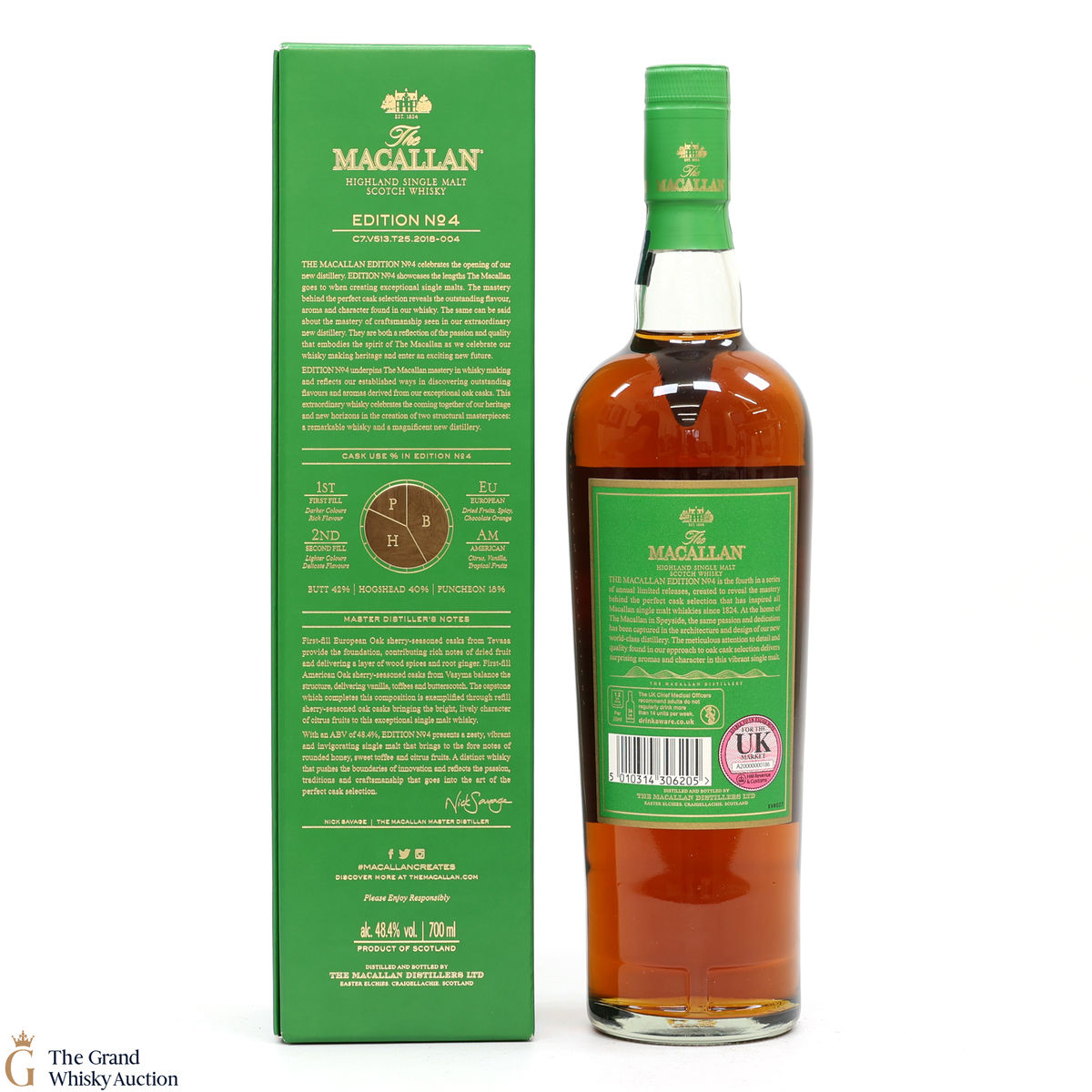 The fourth release in the Edition Series from The Macallan, this Speyside single malt is a celebration of the distillery's whisky making heritage, combining a unique selection of oak cask styles. Edition No.4 reflects the craftsmanship and pioneering design of the new Macallan distillery.