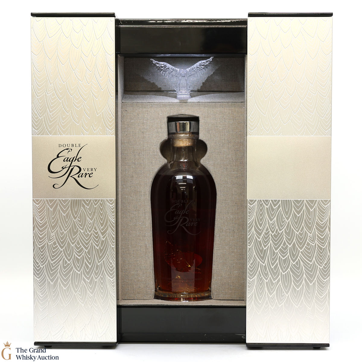 A striking and very limited edition bottling from Buffalo Trace Distillery, the double Eagle Very Rare is unique due to its crystal decanter with two eagles, one of which is inside the bottle itself. This bottle comes in a light-up wooded presentation box.