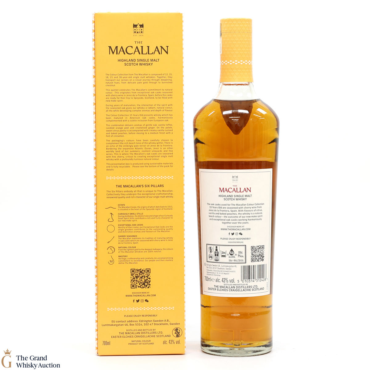 The return of the age statement honours these distinctive global travel exclusive releases. The Colour Collection is a range of exceptional whiskies, celebrating two pillars on which The Macallan legacy is built: Natural Colour and Sherry Seasoning. It is composed of 12, 15, 18, 21 and 30-year-old expressions.