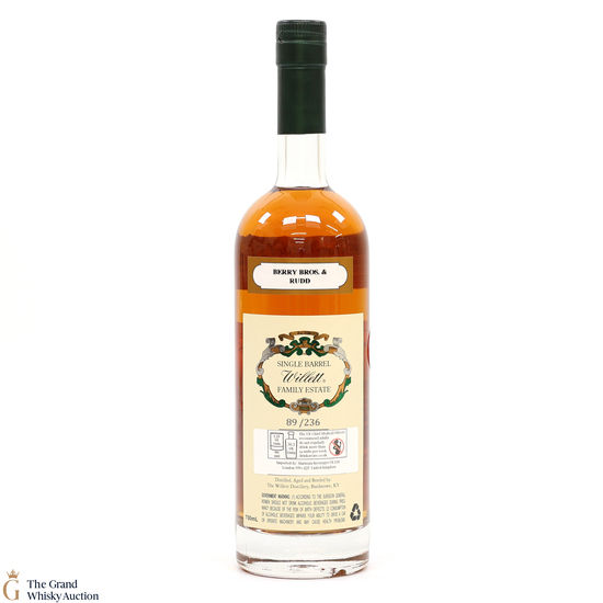This is Willett's Family Estate bottled single-barrel rye. Aged in hand-selected White Oak Barrels for 6 years. This particular bottle was hand-bottled from barrel no #3085 exclusively for Berry Bros & Rudd.