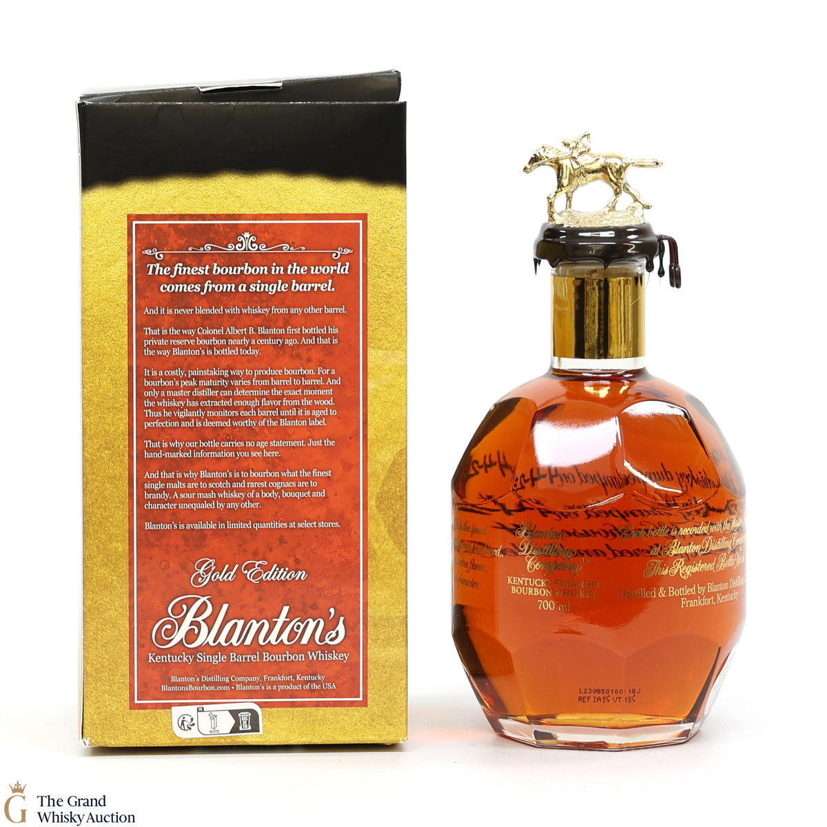 PLEASE NOTE: The wax seal on Blanton's bottles are prone to cracking in transit due to their design. Therefore, as stated in our T&C’s, we do not and will not accept liability should the seal be breached, broken, split or leak in transit. Additionally, please know due to the design of the internal cardboard packaging that surrounds the top of the bottles, it too may be torn. By bidding on this lot you have understood this to be true. Insurance is for complete breakage or loss in transit only.