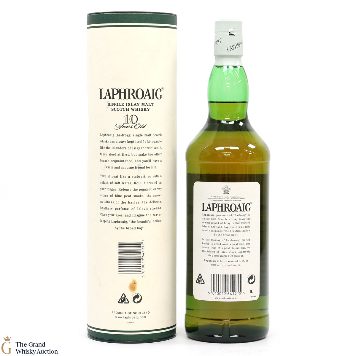 A 1L of the medicinal 10-year-old from Islay's bestselling distillery, Laphroaig. In making Laphroaig, malted barley is dried over a peat fire. The smoke from this peat, found only on Islay, gives Laphroaig its particularly rich flavour.
