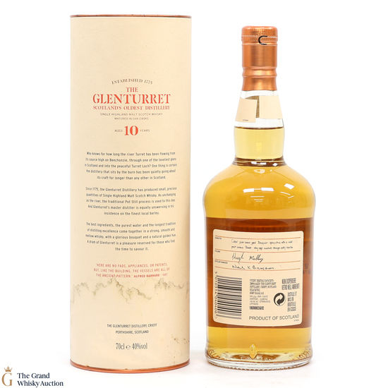A bottle of 10 Year Old Glenturret, released to replace the 12-year old which was discontinued in 2003.