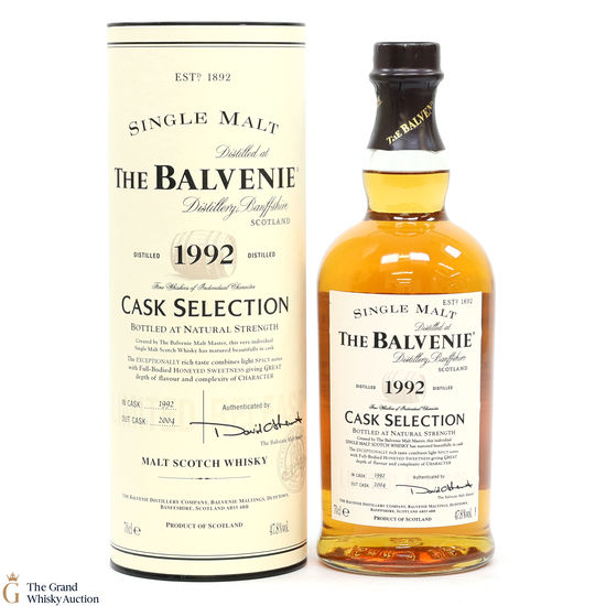 Created by the Balvenie Malt Master, this individual single malt has been matured beautifully in cask. Distilled in 1992 and bottled at natural strength in 2004.