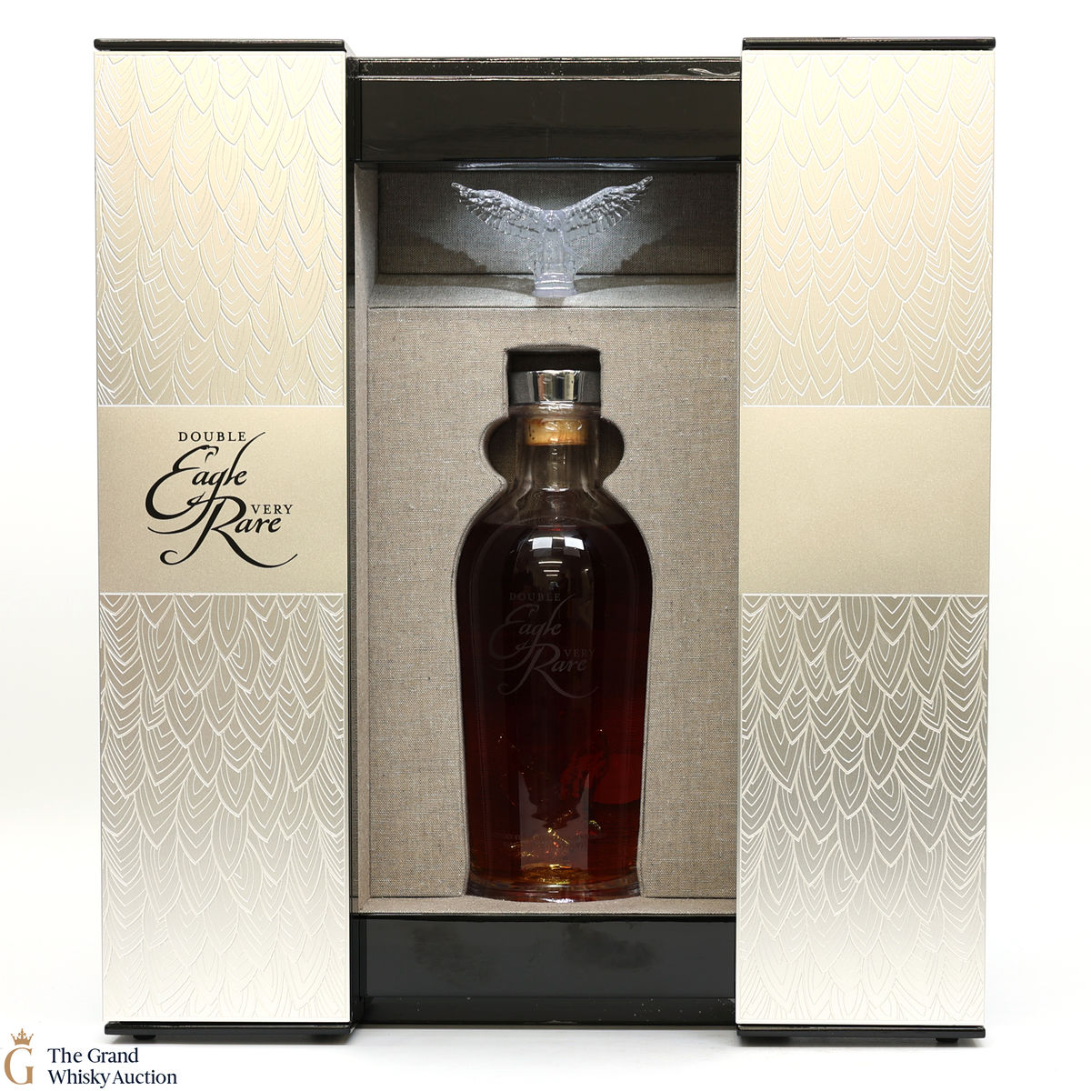 A striking and very limited edition bottling from Buffalo Trace Distillery, the double Eagle Very Rare is unique due to its crystal decanter with two eagles, one of which is inside the bottle itself. This bottle comes in a light-up wooded presentation box.