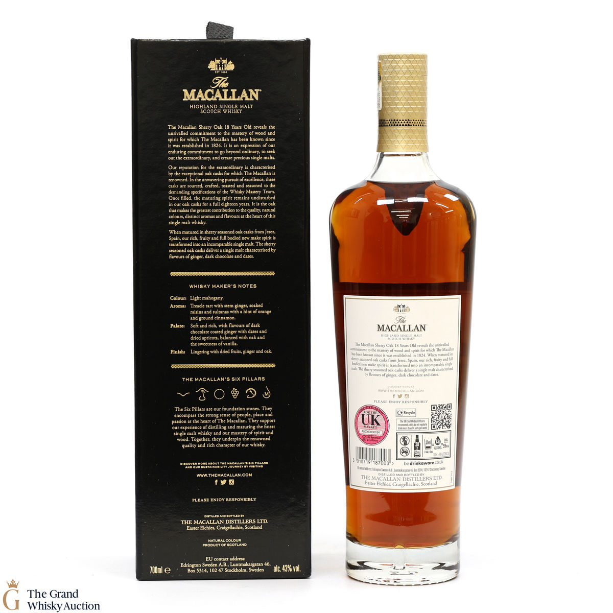This annual release of The Macallan's popular 18 Year Old Sherry Oak is matured exclusively in sherry seasoned casks, built from both Spanish and American oak, providing a beautifully dark flavour with rich aromas.