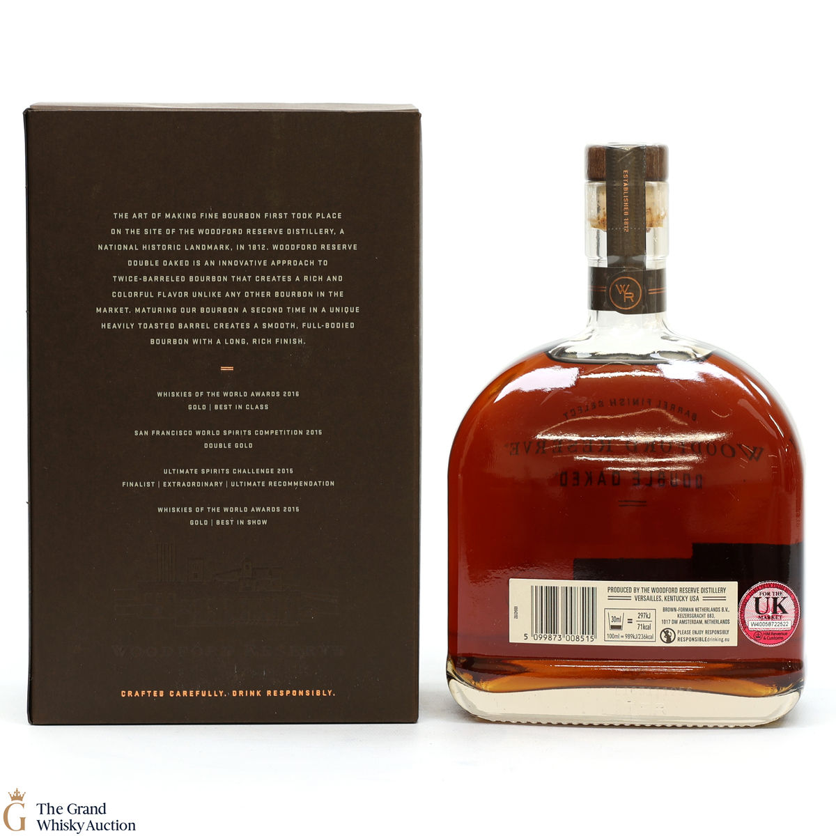 Woodford Reserve Double Oaked Kentucky straight bourbon whiskey finished in a second oak barrel that has been heavily toasted and lightly charred.