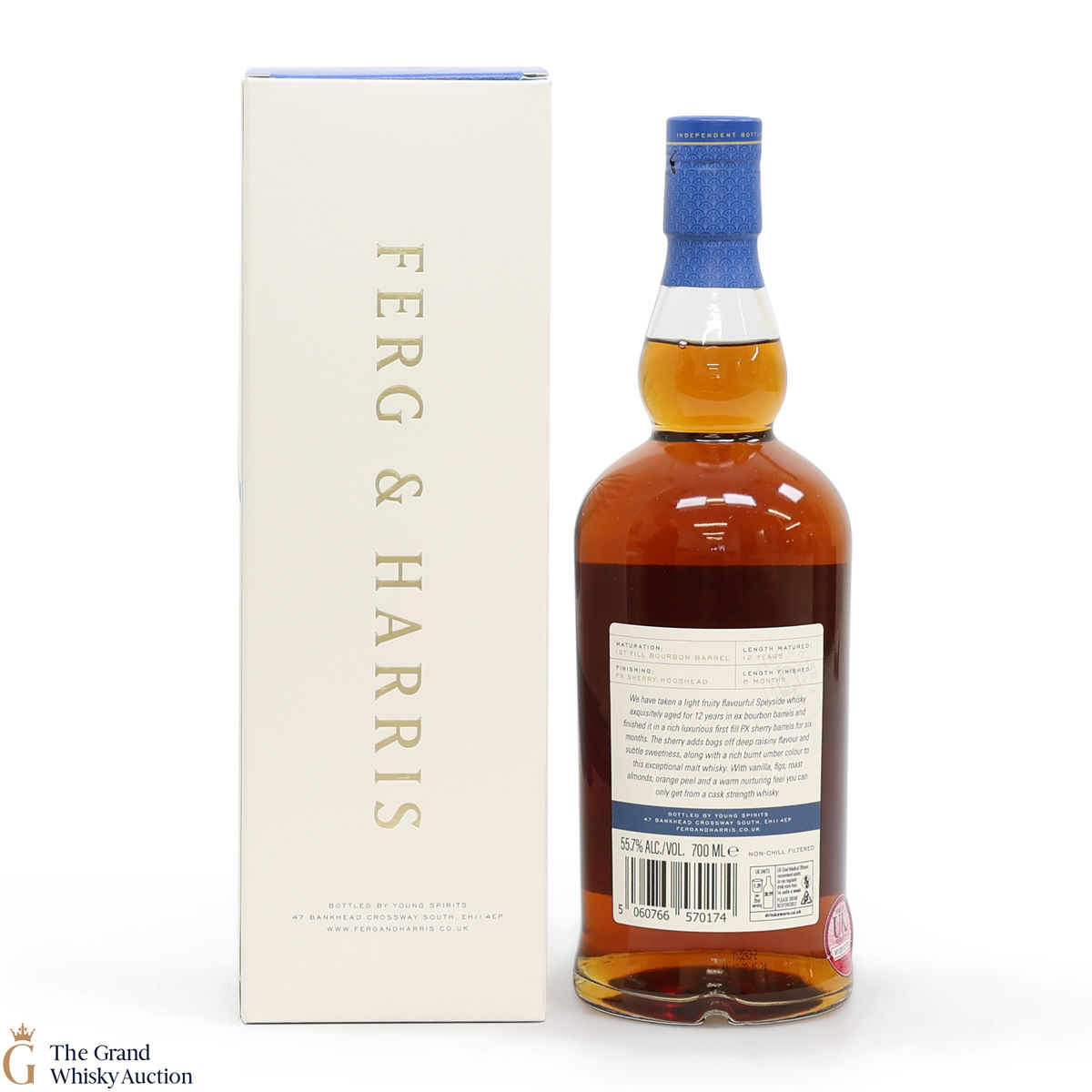 This Speyside single malt was matured for 12 years in first-fill bourbon barrels before being finished for six months in Pedro Ximenez sherry casks. 2,873 bottles were bottled at 55.7% ABV by independent bottlers Ferg & Harris.
