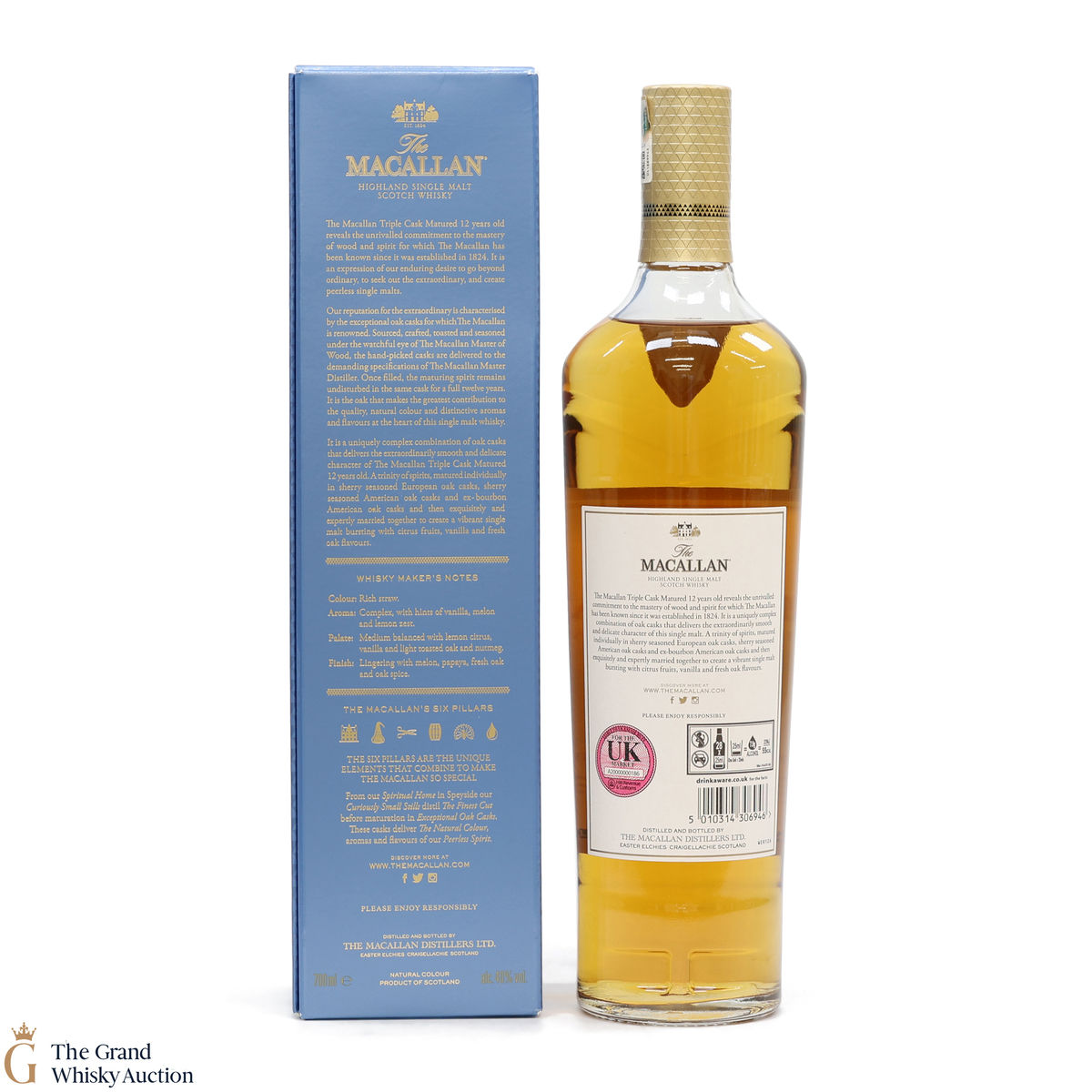 The 12 year old single malt was matured for 12 years and drawn from a combination of European sherry seasoned casks, American sherry seasoned casks and American ex-bourbon casks. It is part of Macallan's Triple Cask range which was launched in 2018, taking the place of the Fine Oak range.