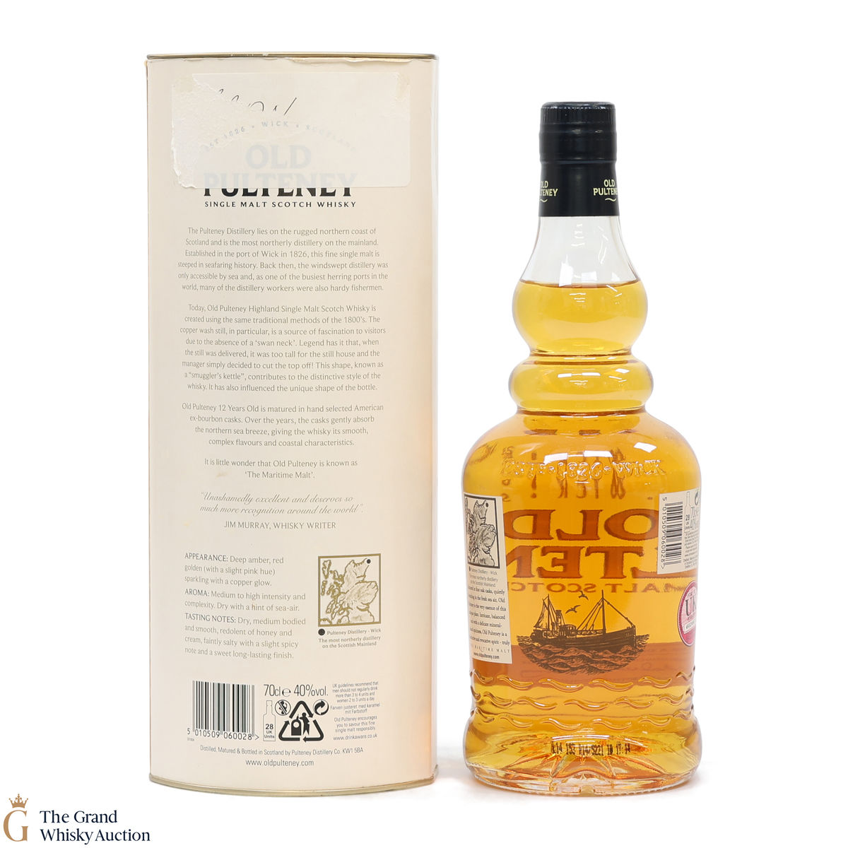 Old Pultney is known as the Maritime Malt due to the distillery's location in the very North of Scotland and this is honoured with the unique shape of the bottle.