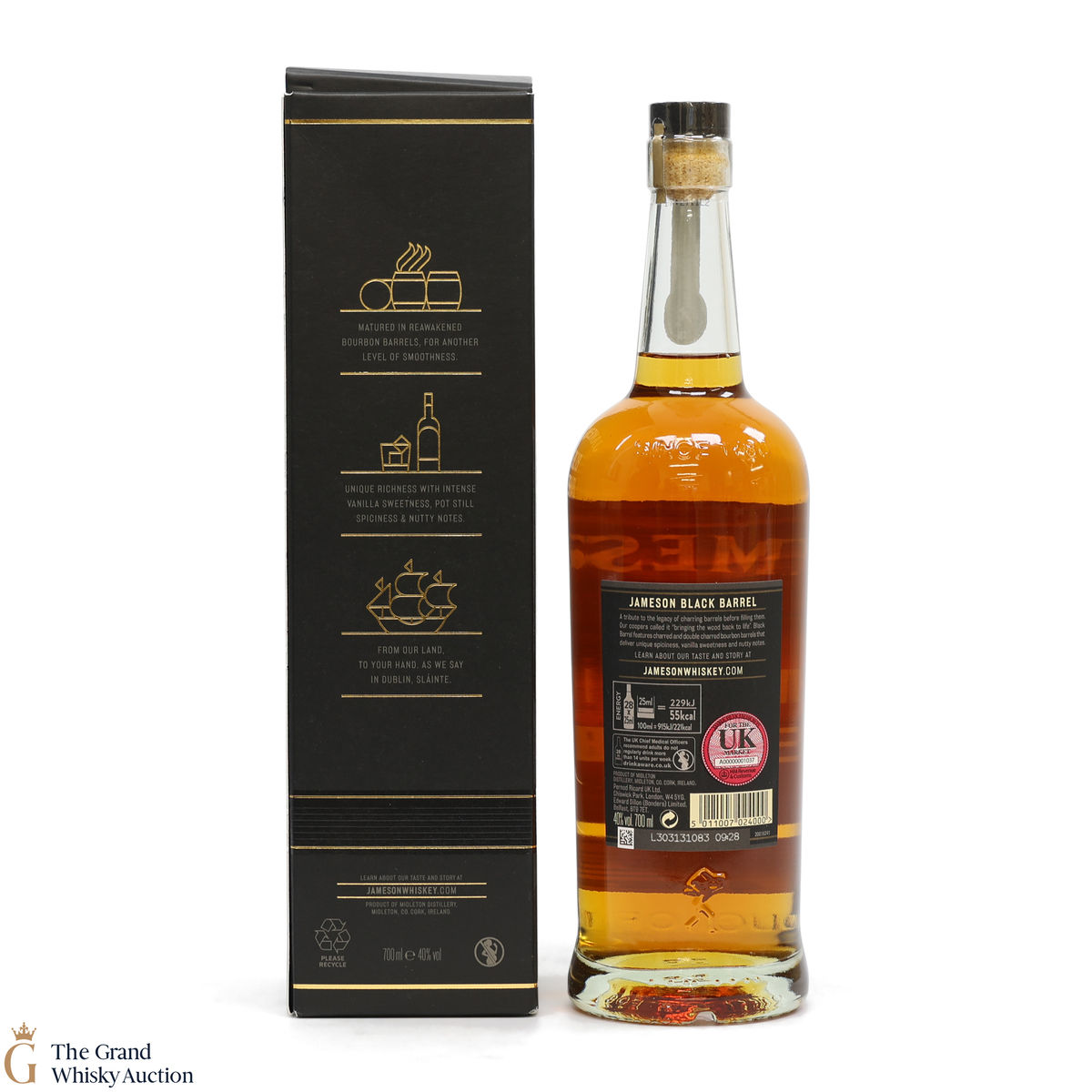 A special pot still whiskey-heavy version of Jameson. Black Barrel is known for having lots of first-fill bourbon and sherry casks added to this special mixture.