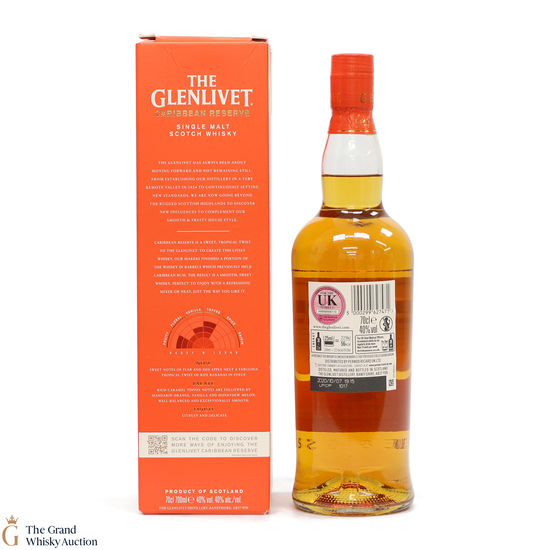 Distilled at Glenlivet Distillery in Speyside, this single malt was finished in casks that previously held Caribbean Rum.