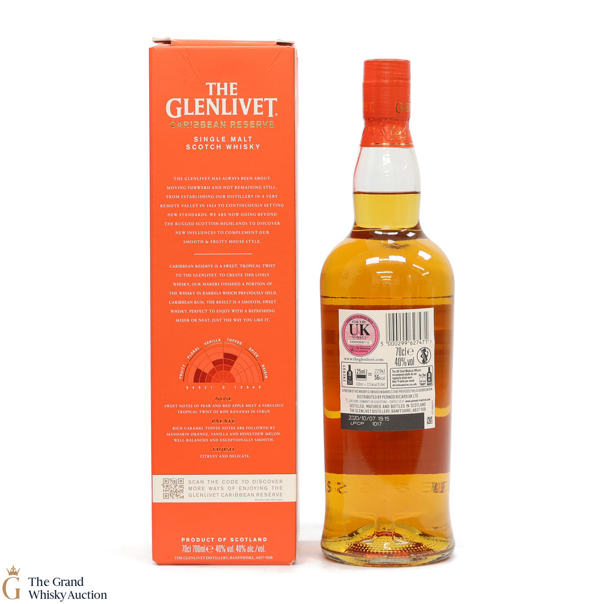 Distilled at Glenlivet Distillery in Speyside, this single malt was finished in casks that previously held Caribbean Rum.