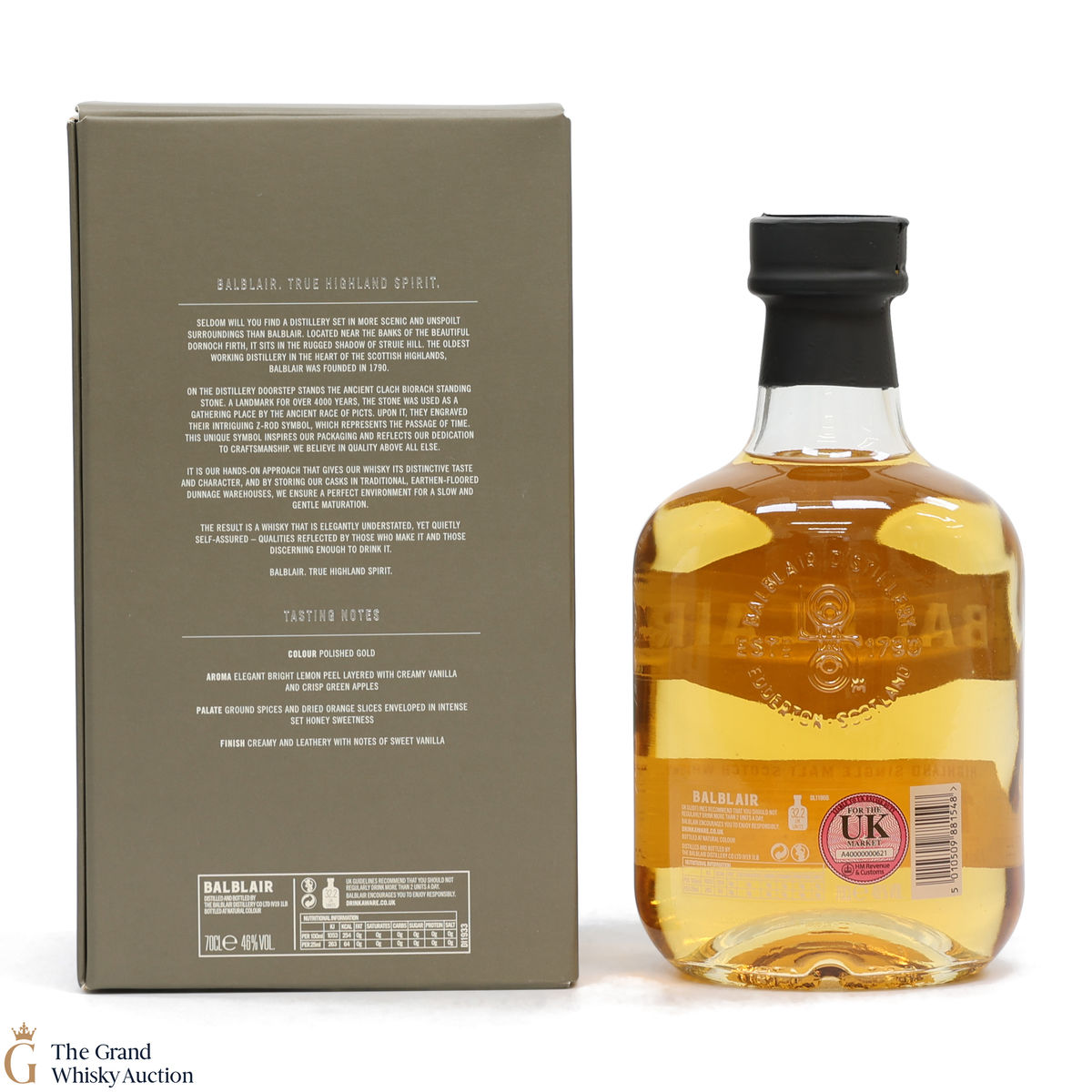 A 12-Year-Old Balbalir single malt. Balblair distillery was built in 1790 by the Ross family and in 1872 they moved to a new site in order to make use of the newly built railway between Wick and Inverness.