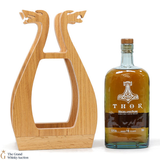 Thor is a 16-Year-Old single malt named after the Norse God of Thunder and alleged architect of the Cliffs of Yesnaby on the west coast of Orkney Mainland. This bottling comes with a striking wooden stand that resembles a Viking boat.