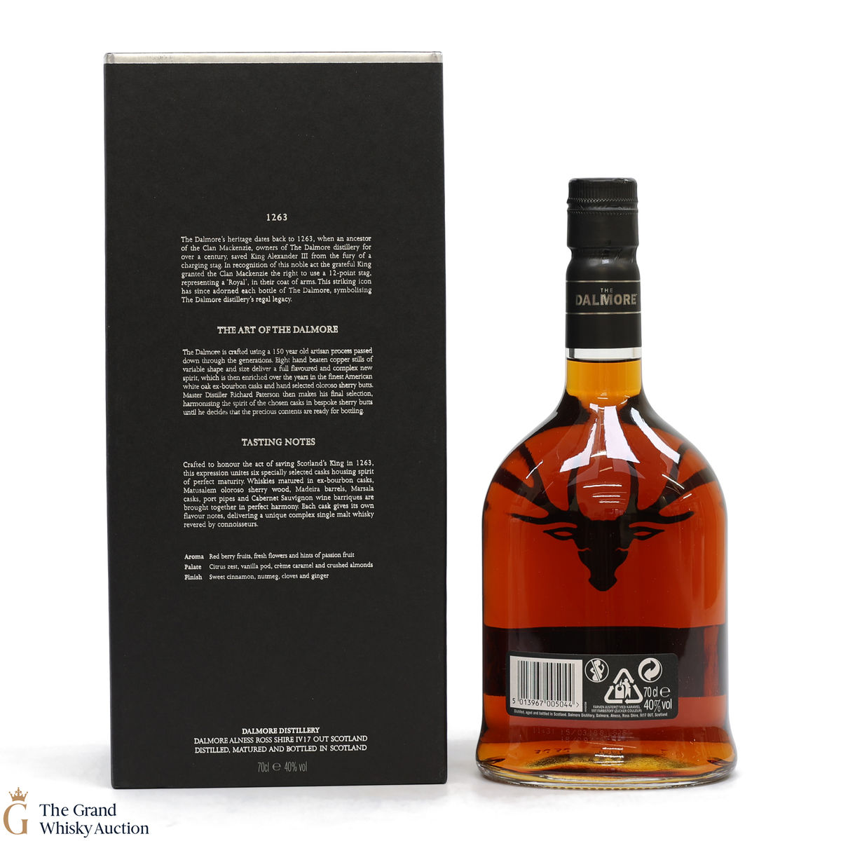 To make The Dalmore King Alexander III, Master Distiller Richard Paterson specially selected 6 casks of differently aged Dalmore malts matured in wine, Madeira, sherry, marsala, Kentucky bourbon and port casks. A remarkable feat of blending crafted to honour the act of saving Scotland's King in 1263. It is a rich, fruity Highland single malt.