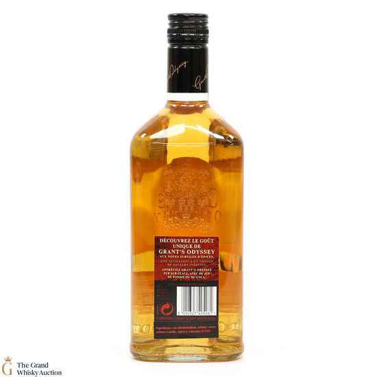 This is a triangular-shaped bottle of Scotch Whisky Liqueur - Grant's Odyssey.