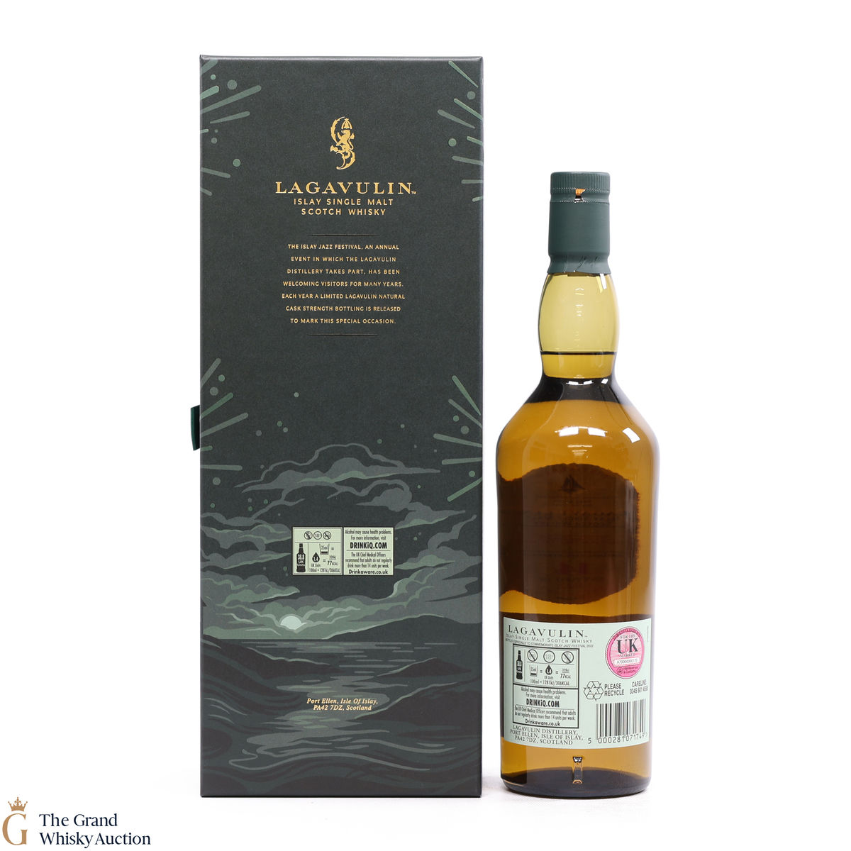 A bottling only released at the distillery bottled especially to commemorate the 2022 Jazz festival on Islay. This is one of only 3000 bottles that has uniquely been matured in refill American oak and then finished in brandy seasoned hogsheads. This has added an unexpected twist of sweetness to typical Lagavulin smokiness. Bottled at the cask strength of 55.4%.