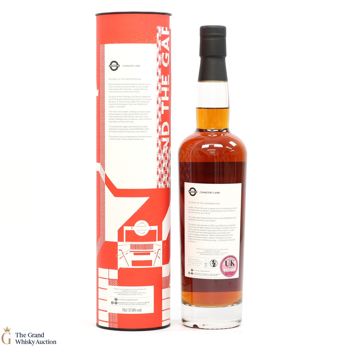 Distilled at the Bimber Distillery based in London, this single malt was matured in Ex maderia cask #107/1 and bottled in Nov 2021 as part of The Spirit of the Underground series, given the title of Chancery Lane. This is one of only 298 bottles produced as part of Release No.2.