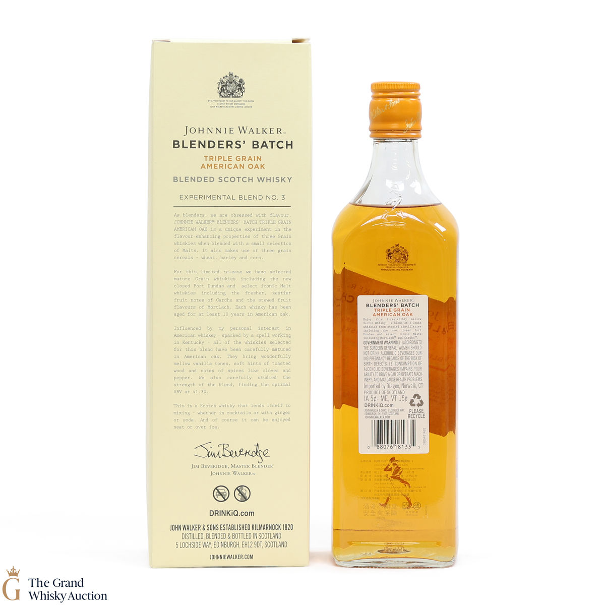 Johnnie Walker Blenders' Batch - triple grain American oak was aged for 10 years in American Oak casks. Made from three grains - wheat, barley and corn, blended with select malts.