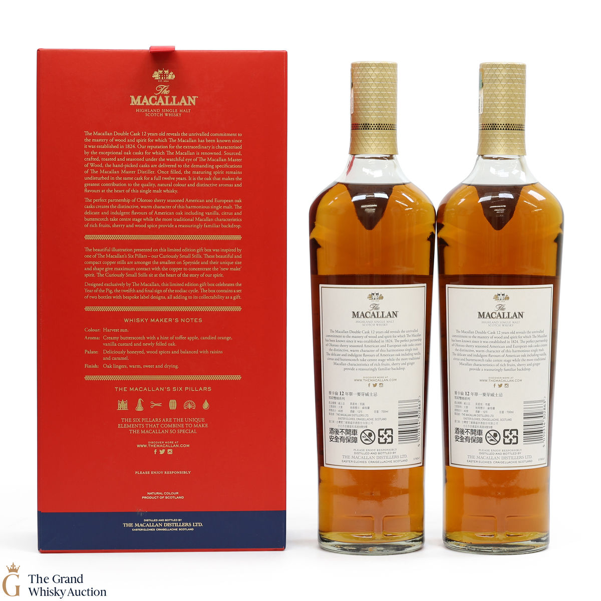 With bespoke label designs, this is an eye-catching limited-edition release twin pack containing 2 x 70cl bottles of The Macallan 12-year-old Double Cask single malt whisky.