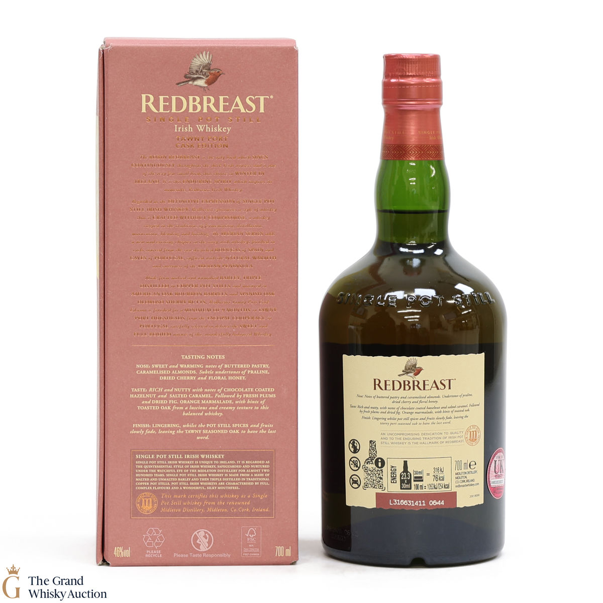 Triple distilled and initially matured in oak casks, then in Tawny Port casks to finish for at least 12 months.